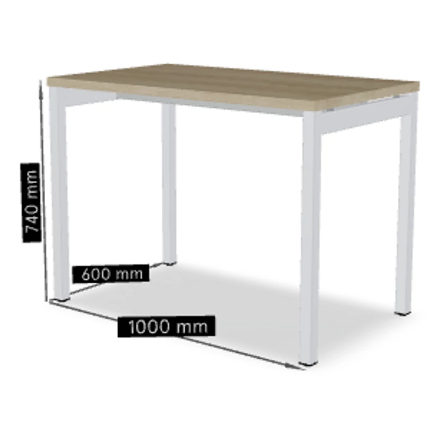OGI Y iroda asztal (4-lábas, merevítő gerendás) 100 x 60 fehér láb / tölgy asztallap