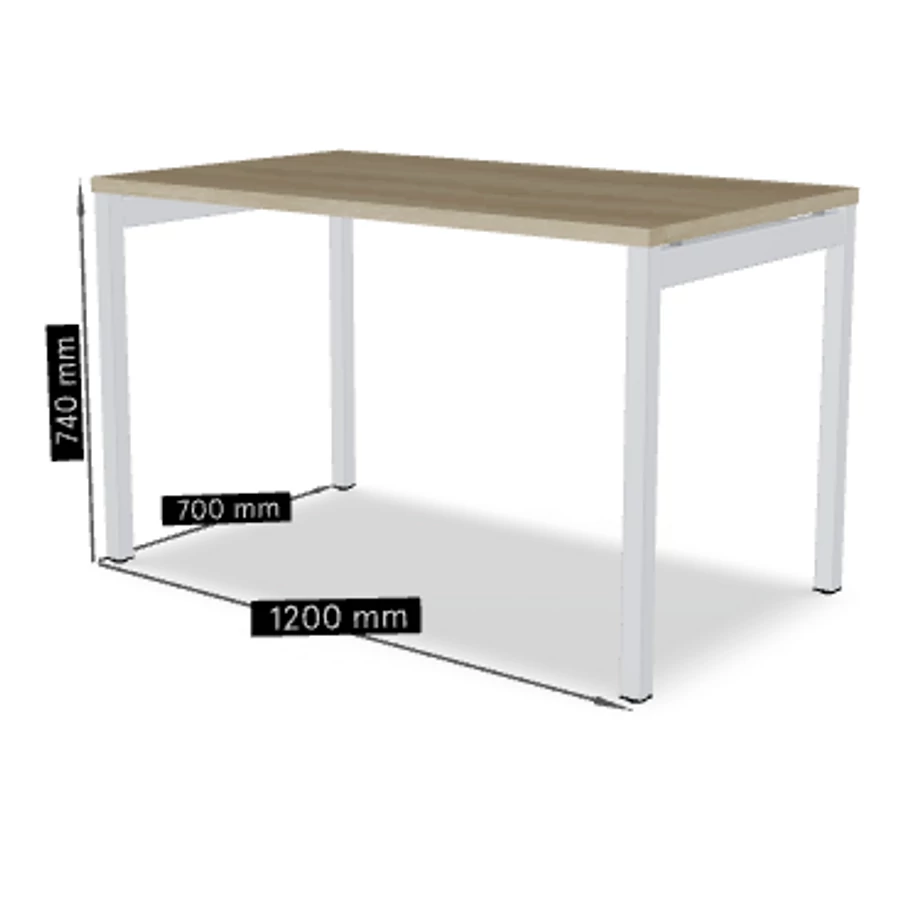 OGI Y iroda asztal (4-lábas, merevítő gerendás) 120 x 70 fehér láb / tölgy asztallap