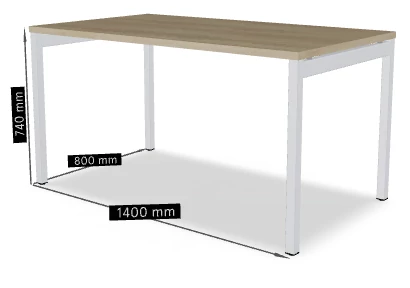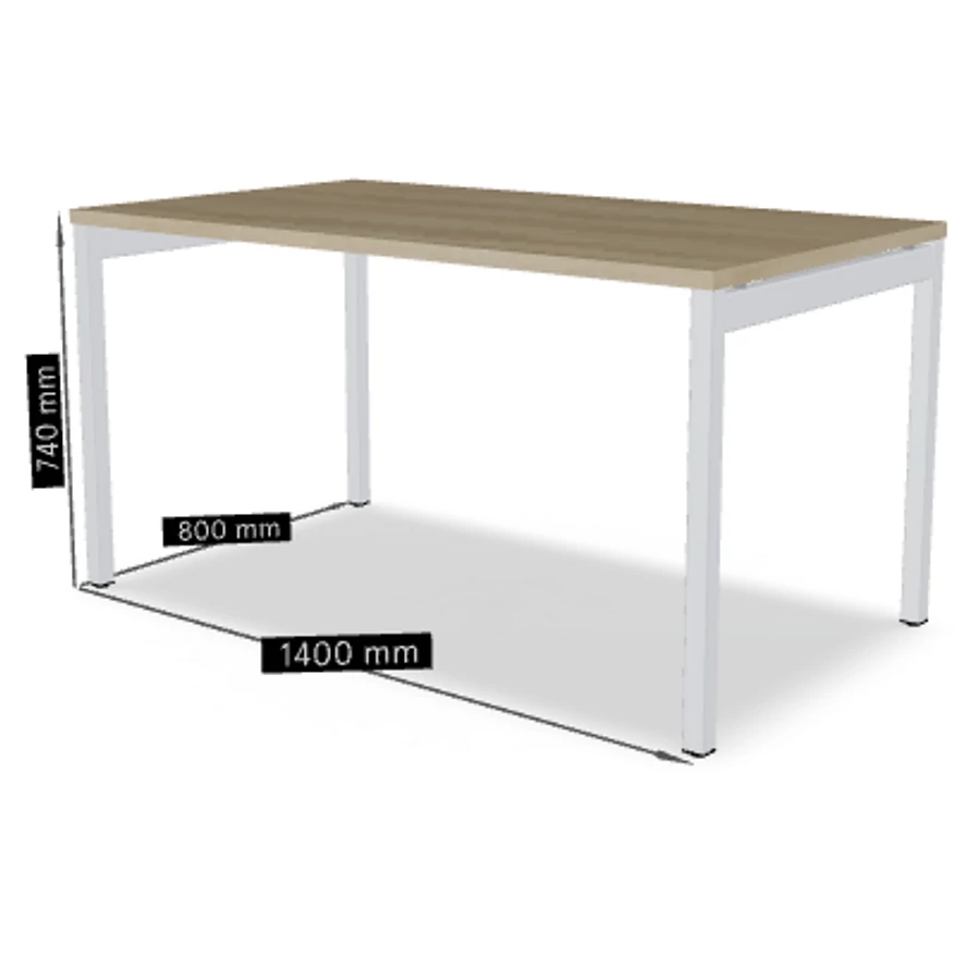 OGI Y iroda asztal (4-lábas, merevítő gerendás) 140 x 80 fehér láb / tölgy asztallap